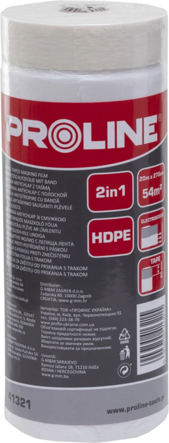 FOLIA ANTYCHLAP Z TAŚMĄ MALARSKĄ, 20 M X 270 CM, PROLINE