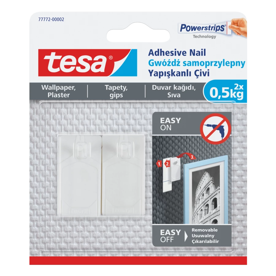 - Idealnie nadaje się do wieszania lekkich obrazków, antyram oraz dekoracji na gładkich i fakturowych powierzchniach takich jak tapeta i tynk