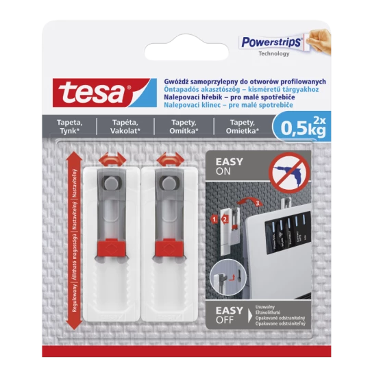 - Gwoździe samoprzylepne można regulować w poziomie i w pionie, dzięki czemu idealnie nadają się do bezpiecznego montażu małych urządzeń elektrycznych, np. Routerów Wi-Fi, na tapetach i gipsie