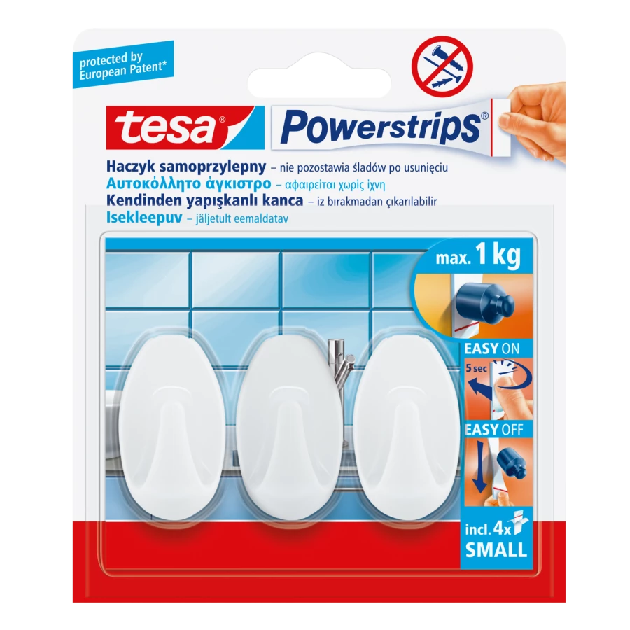 HACZYKI SAMOPRZYLEP.POWERSTRIPS 3 SZT.OWALNE MAŁE,BIAŁE