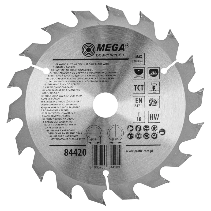 PIŁA TARCZOWA DO DREWNA 160*18T*20/16MM