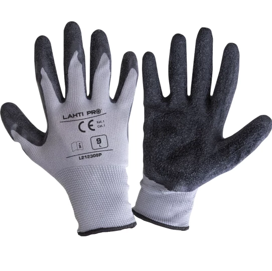 RĘKAWICE LATEKS SZARO-CZARNE L212309P, 12 PAR, "9",CE, LAHTI