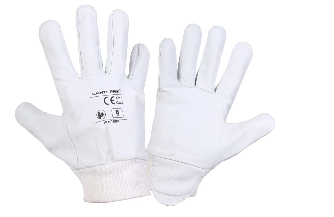 RĘKAWICE ZE SKÓRY KOZ. BIAŁE L271108P, KARTA, "8", CE, LAHTI
