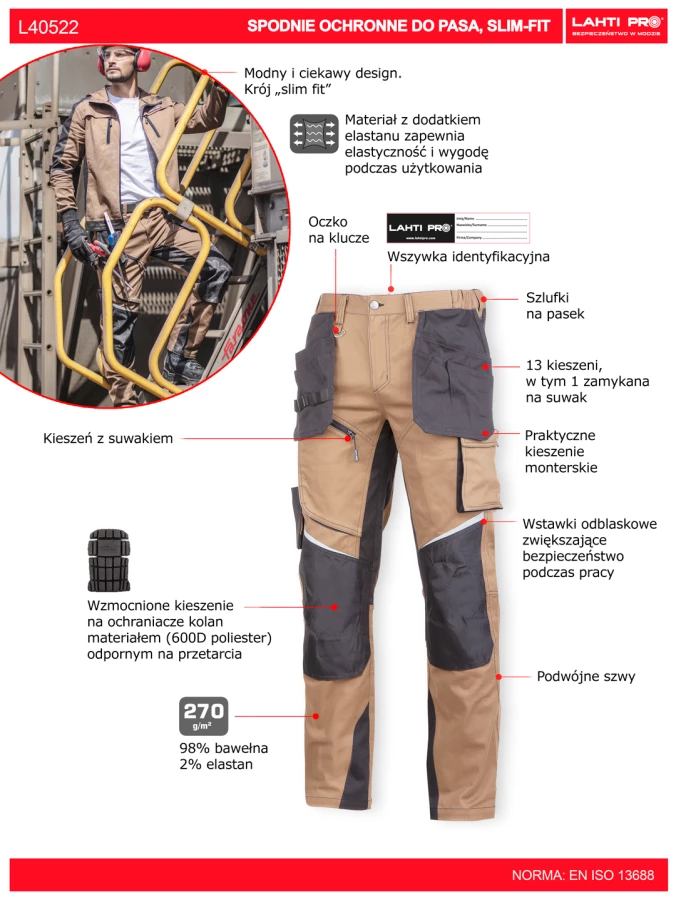 SPODNIE BRĄZOWO-CZARNE, "L", CE, LAHTI