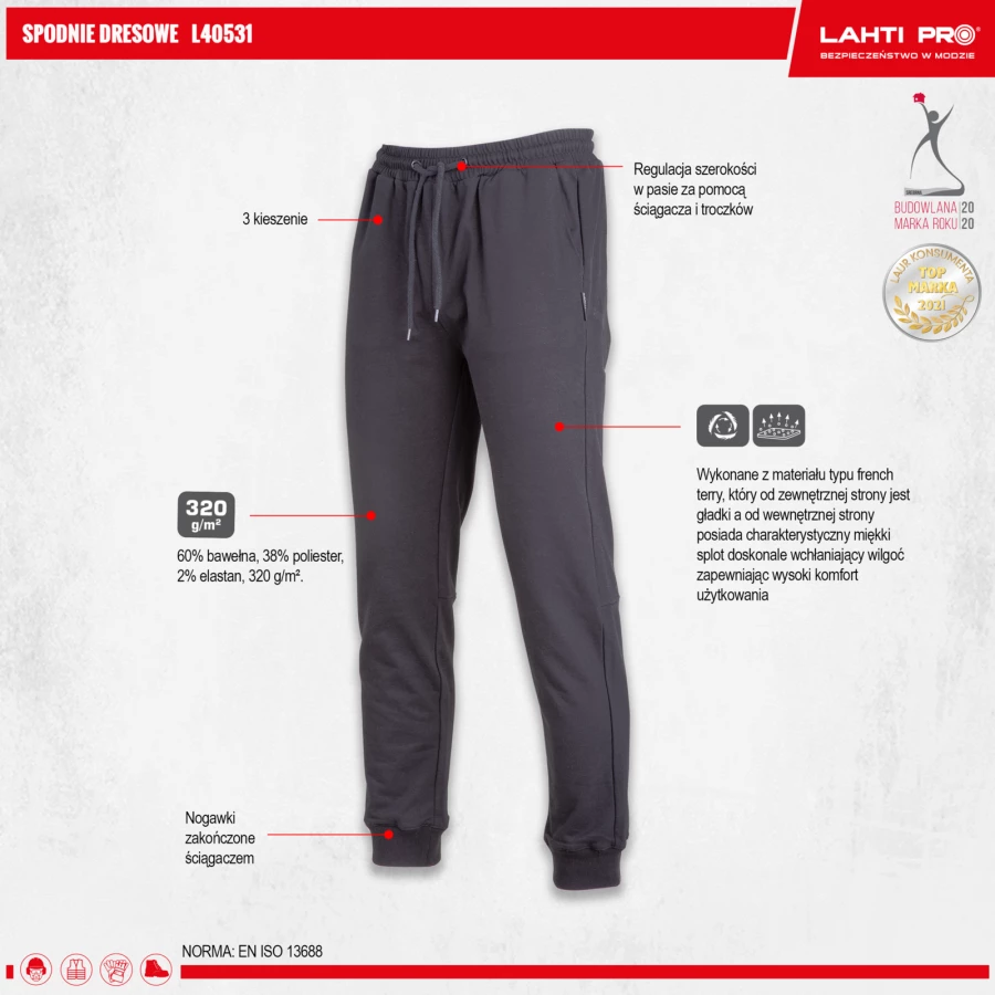 - MATERIAŁ: 60% bawełna, 38% poliester, 2% elastan, 320 g/m²
