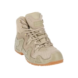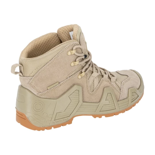 - MATERIAŁ: Wierzch: skóra zamszowa/tkanina typu Oxford o właściwościach hydrofobowych. Podszewka: wbudowana oddychająca i wodoodporna skarpeta z membraną/dzianina siatkowa. Wyściółka: wymienna (wkładki z elastyczną poduszką tłumiącą wstrząsy oraz podkładką łagodzącą nacisk stopy na podłoże). Podeszwa: gumowa, głęboki bieżnik zwiększa przyczepność do podłoża