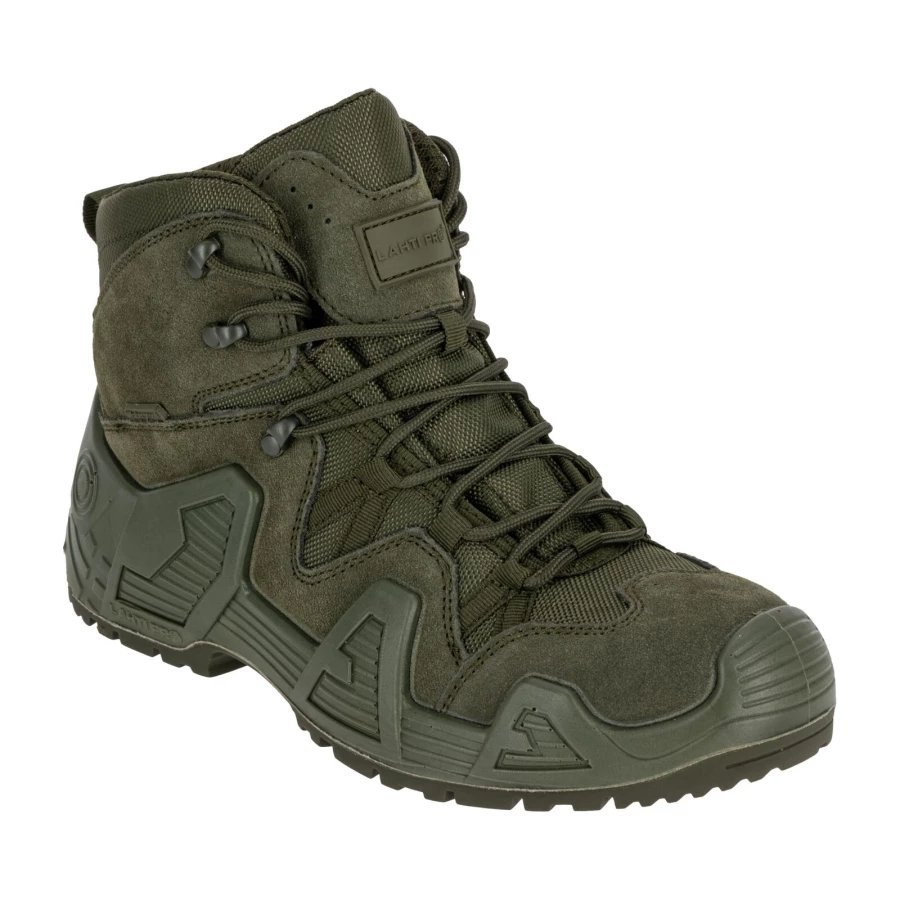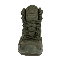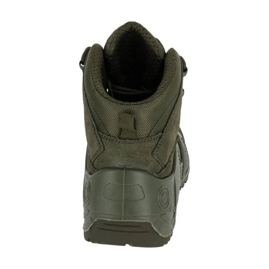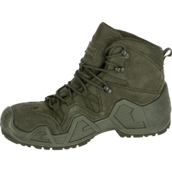- MATERIAŁ: Wierzch: skóra zamszowa/tkanina typu Oxford o właściwościach hydrofobowych. Podszewka: wbudowana oddychająca i wodoodporna skarpeta z membraną/dzianina siatkowa. Wyściółka: wymienna (wkładki z elastyczną poduszką tłumiącą wstrząsy oraz podkładką łagodzącą nacisk stopy na podłoże). Podeszwa: gumowa, głęboki bieżnik zwiększa przyczepność do podłoża